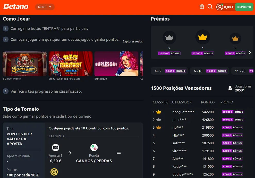 Prémios Betano para Depositantes