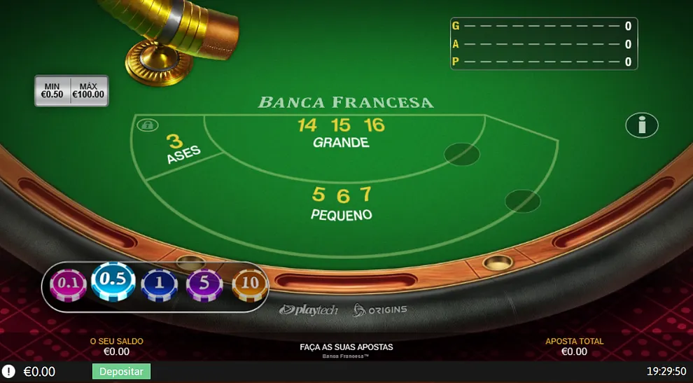 A Banca Francesa é um dos jogos de mesa mais tradicionais nos casinos portugueses e continua a ser uma escolha popular no Betano Casino. Este jogo de dados distingue-se pela sua simplicidade e rapidez, com três opções de aposta: 'Grande', 'Pequeno' e 'Ases'. O objetivo é prever corretamente o resultado da jogada, tornando o jogo acessível mesmo para quem não tem experiência prévia com jogos de casino.