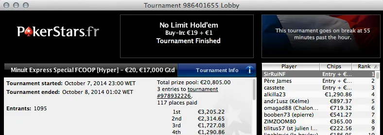 Ja na Stars.FR, Rui "RuiNF" Ferreira venceu o Minuit Express Special FCOOP (€4,306).
