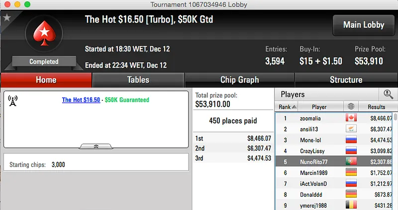 A noite de ontem foi muito boa no que toca a resultados em torneios online, que o fim de semana seja igual e com toda a certeza o Natal será mais recheado em muitos “offices” deste país.
