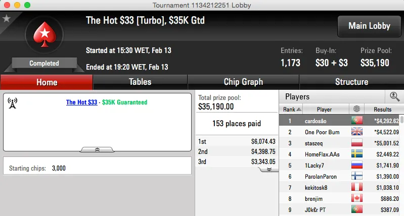 Também num Big, o $22, tivemos um luso em destaque. HanzoKid venceu o torneio e vai ter um carnaval mais recheado, $8,959.