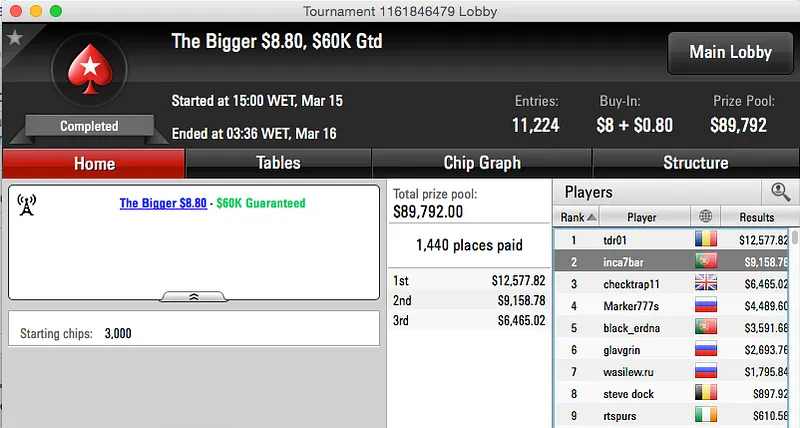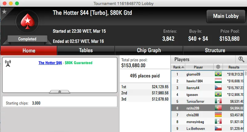 Para finalizar o pódio, e também os prémios de 5 dígitos, temos mais um terceiro lugar. PedroHM foi terceiro no The Hotter $55 e sem deal, juntou mais $18,869 à sua conta.