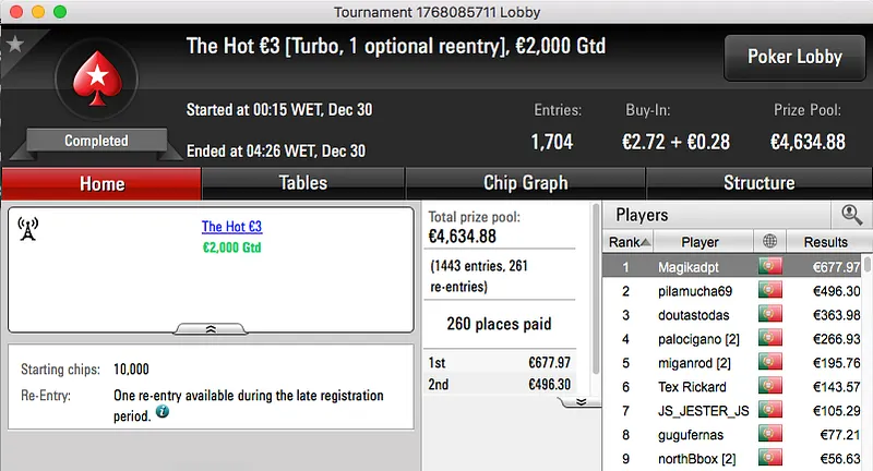 O pódio fica completo com os €1,793 que FCMDL ganhou no The Hot BigStack Turbo €50.