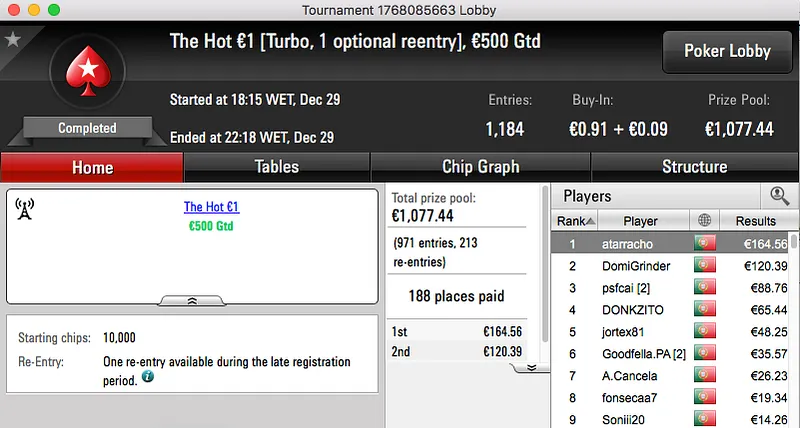 Marco "TiJoao" Dias foi o grande vencedor da sessão de quinta-feira da PokerStars.pt.