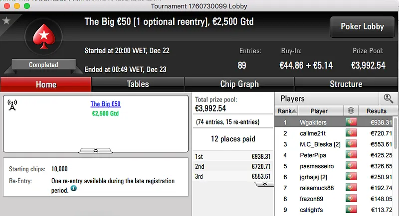 A prata da sessão vai para AAtotheNUTS, venceu o The Big €100 e juntou €1,384 à sua banca.