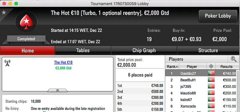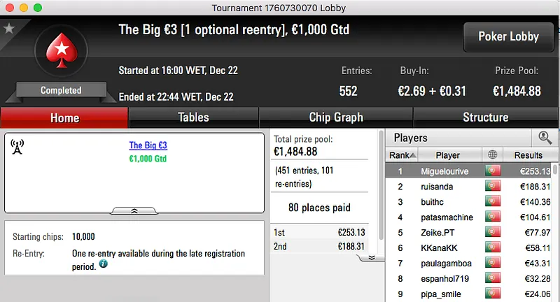 Pedro Feijó Vence The Hot BigStack Turbo, 7º no The Big €100 & Mais