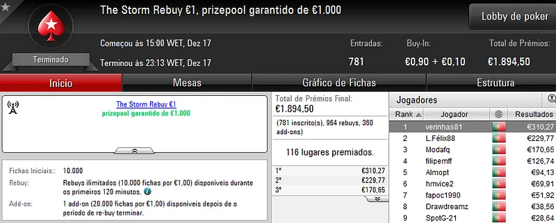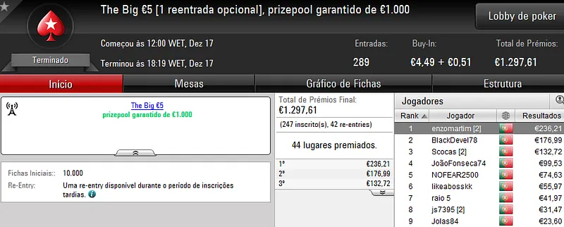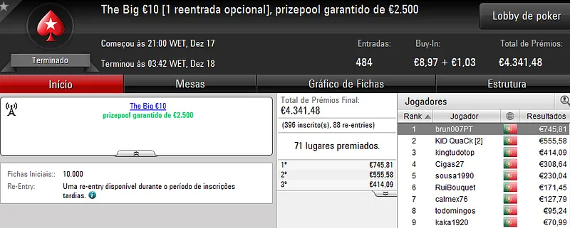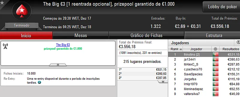 Sábado também é dia de se jogar poker online e ontem registamos mais 3 jogadores que amealharam prémios superiores a €1,000 na PokerStars.pt.