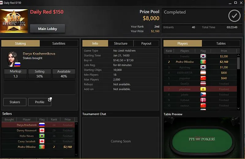 O pódio fecha com o septuagésimo lugar de João Vieira no Evento #16 do TCOOP, rendeu $2.255.