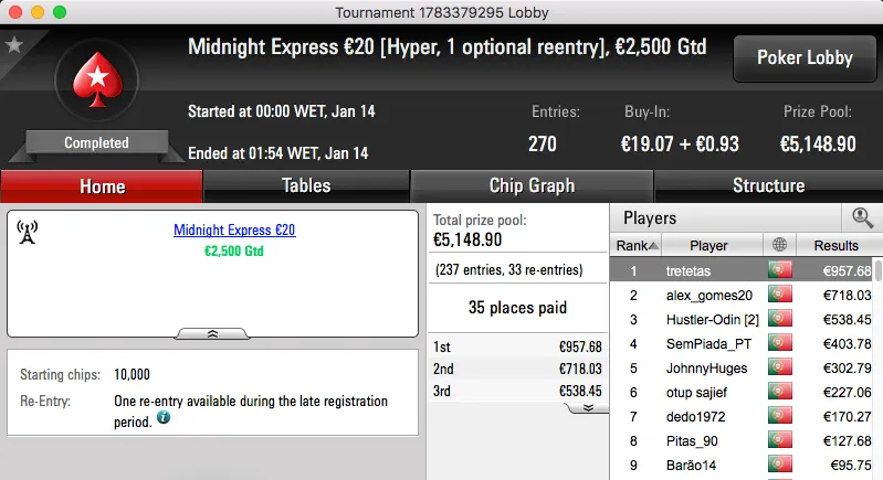 O maior prémio da sessão de sexta-feira da PokerStars.pt foi para Aveiro, mais propriamente para a conta de postiga7.