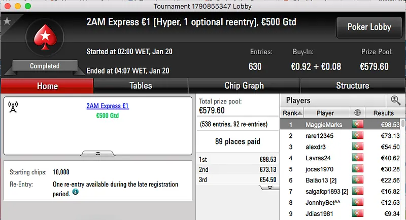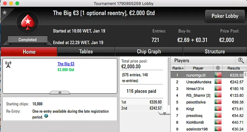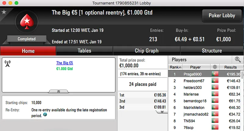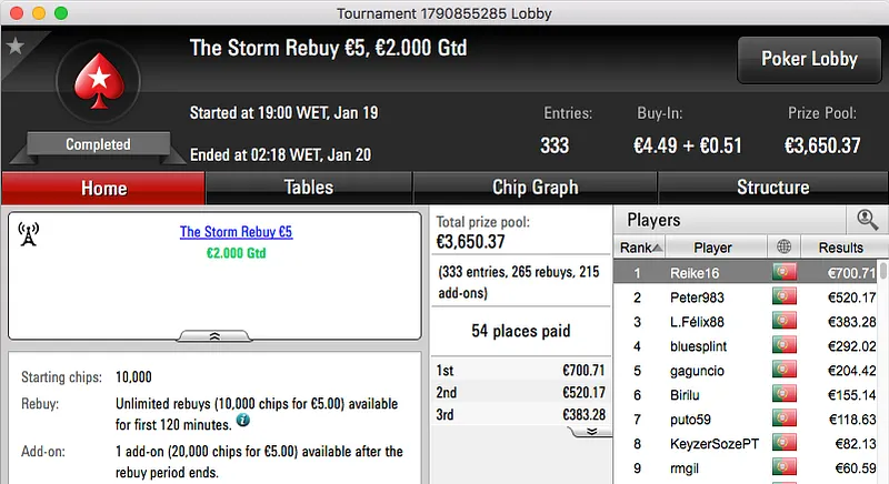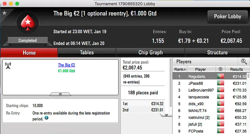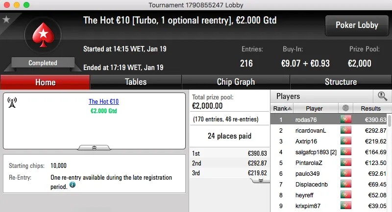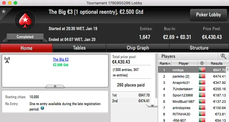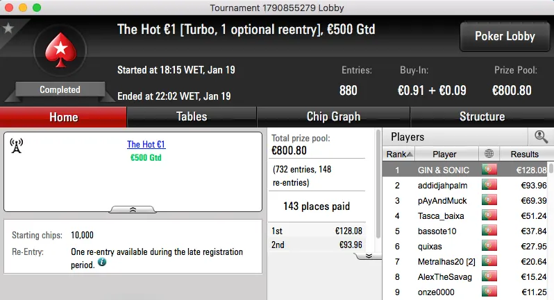 O segundo degrau do pódio ficou na posse de FPimenta1980 (€1,697), o vencedor do The Hot BigStack €50.