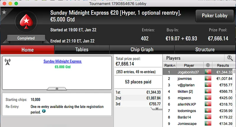Mais uma sessão de domingo e mais uma boa quantidade de prémios de 4 dígitos entregues na PokerStars.pt.