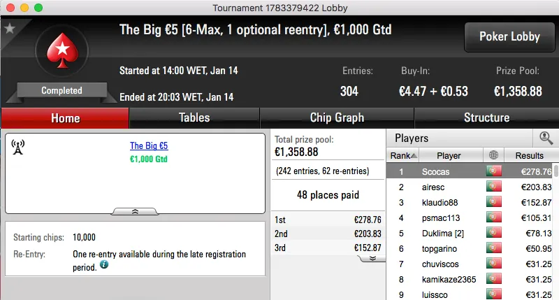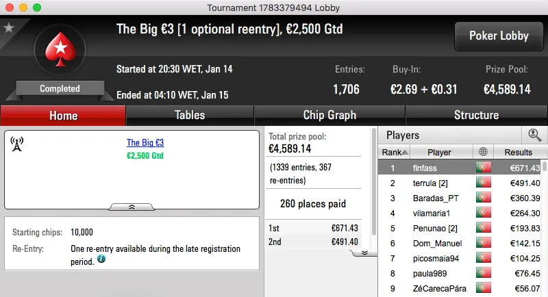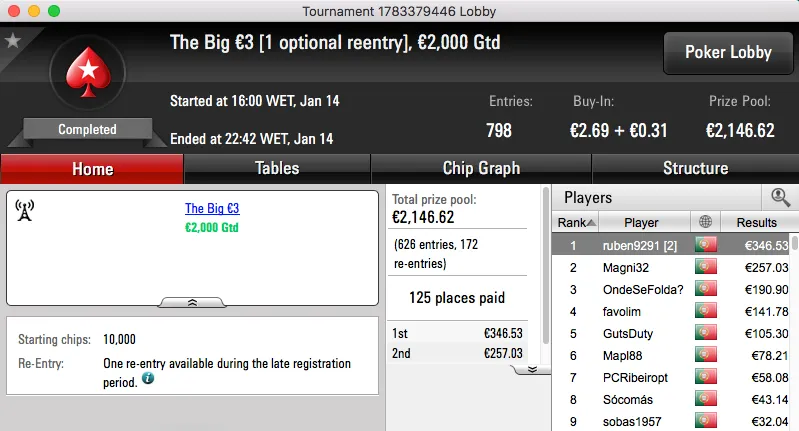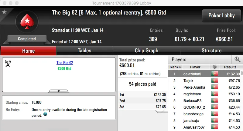 A sessão de sábado não foi muito diferente daquilo que tem sido a semana de grind da PokerStars.pt e o maior prémio foi atribuído no The Big €100.