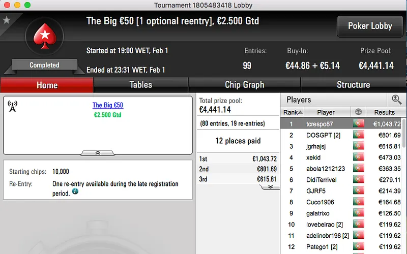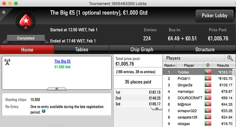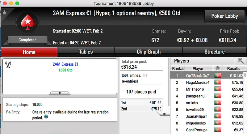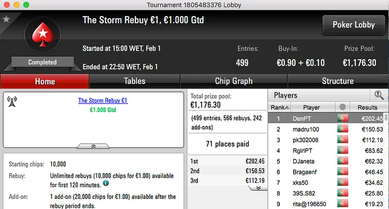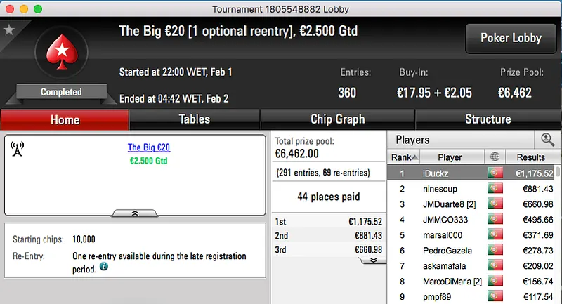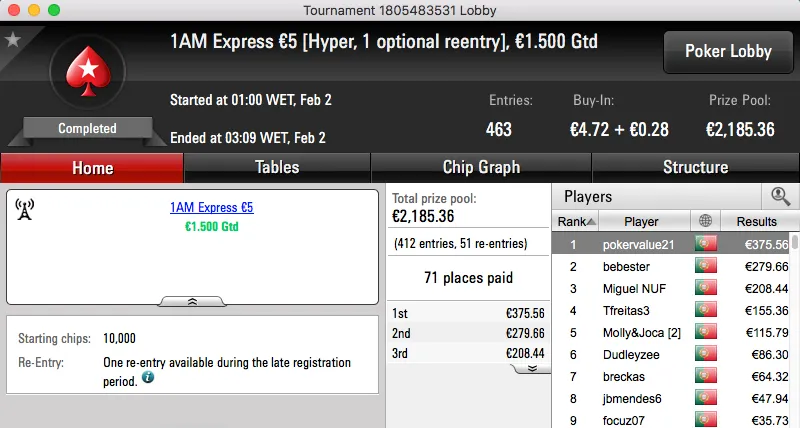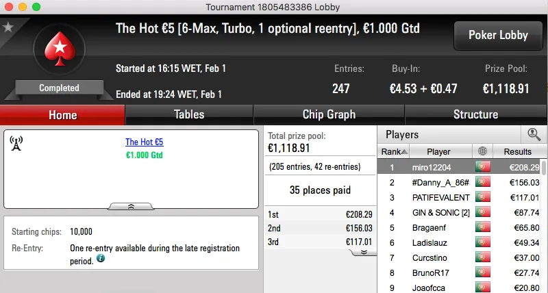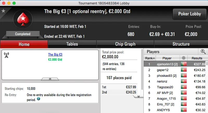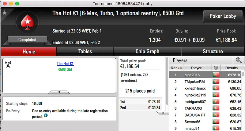 Depois de no domingo ter ganho o Sunday Warm-Up €50, amlfaria volta a brilhar nas mesas da PokerStars.pt.