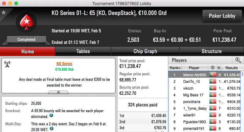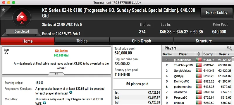 KO Series: guialmeida84 Vence Evento #2 High (€7,181) & Mais
