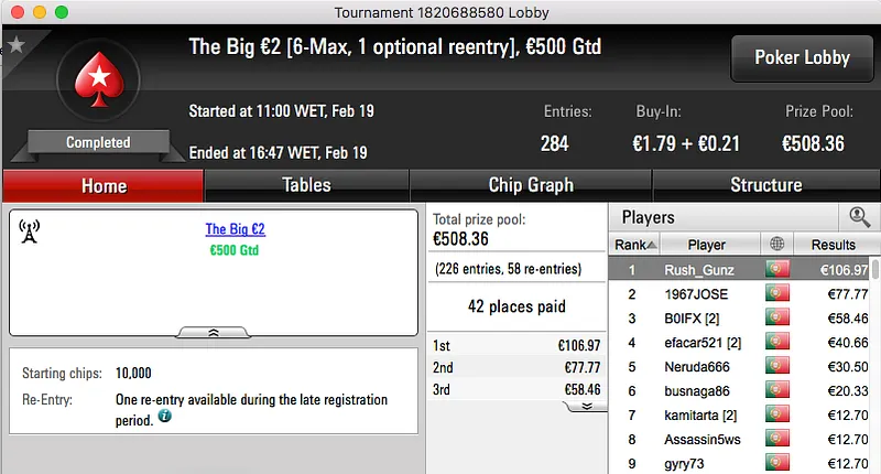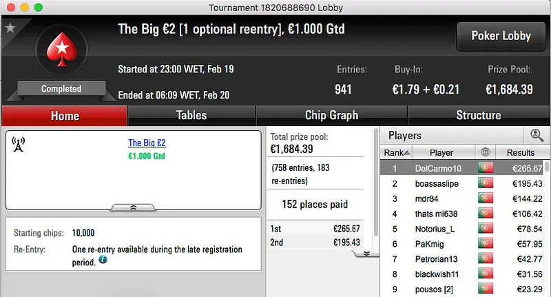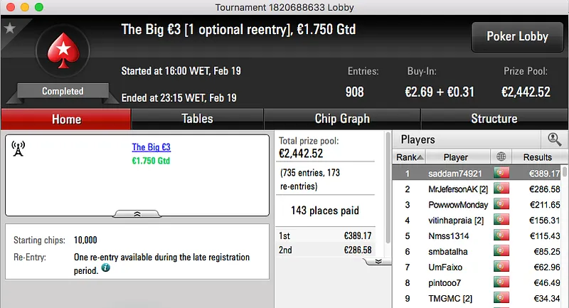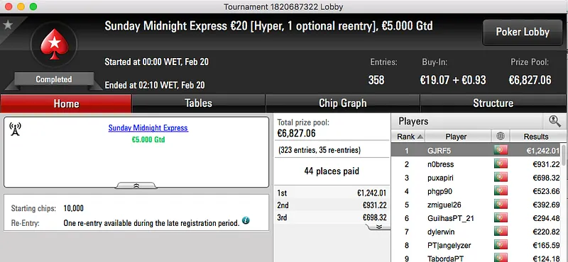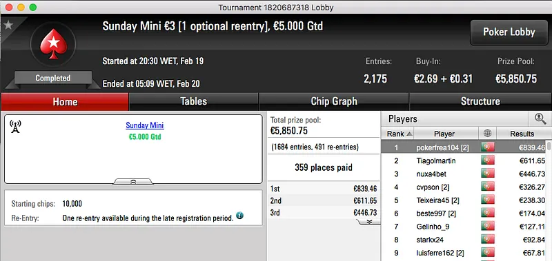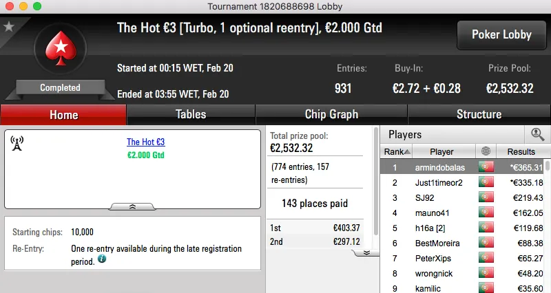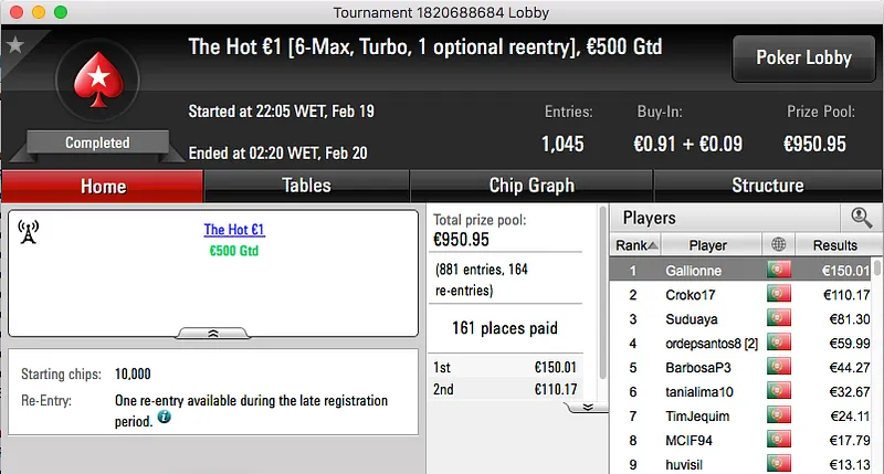 SOUGUITO Vence Sunday Warm-Up €50, tiago_pt93 e LittleMajor1 Dividem Hot BigStack Turbo €50
