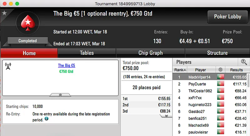 Já tens conta na PokerStars? Não!? Abre já, deposita €10 usando o código “PORTUGAL20” e recebe €30!