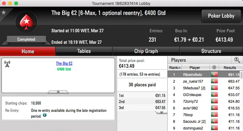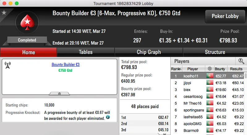 Os torneios regulares da PokerStars.pt não param devido à realização do Spring Championship Of Online Poker e Bernardo "bmbn3" Neves foi o maior vencedor da sessão.