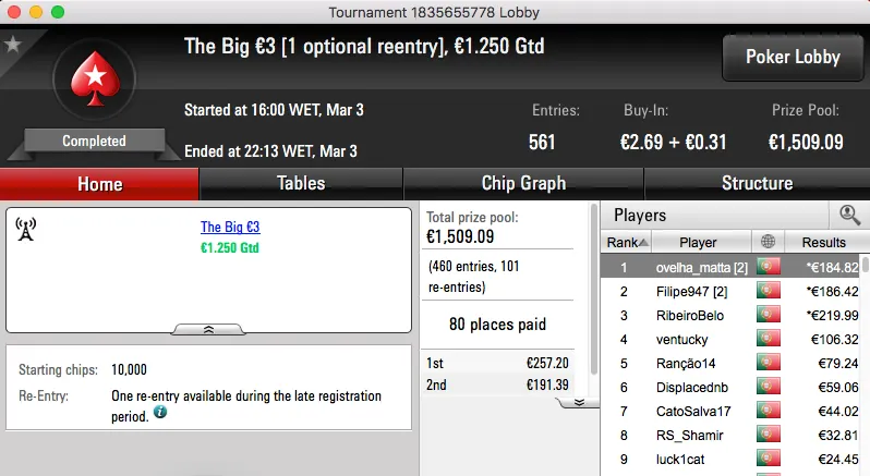 Daniel Moreira Vence The Big €100, shinekorakki o HotBigStack Turbo €50 & Mais