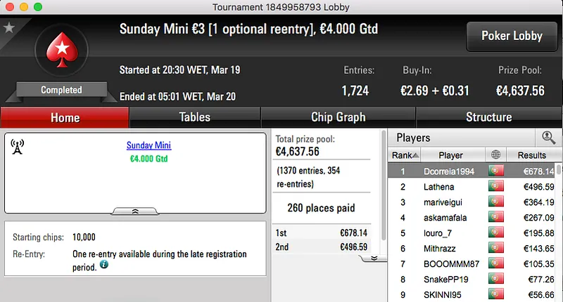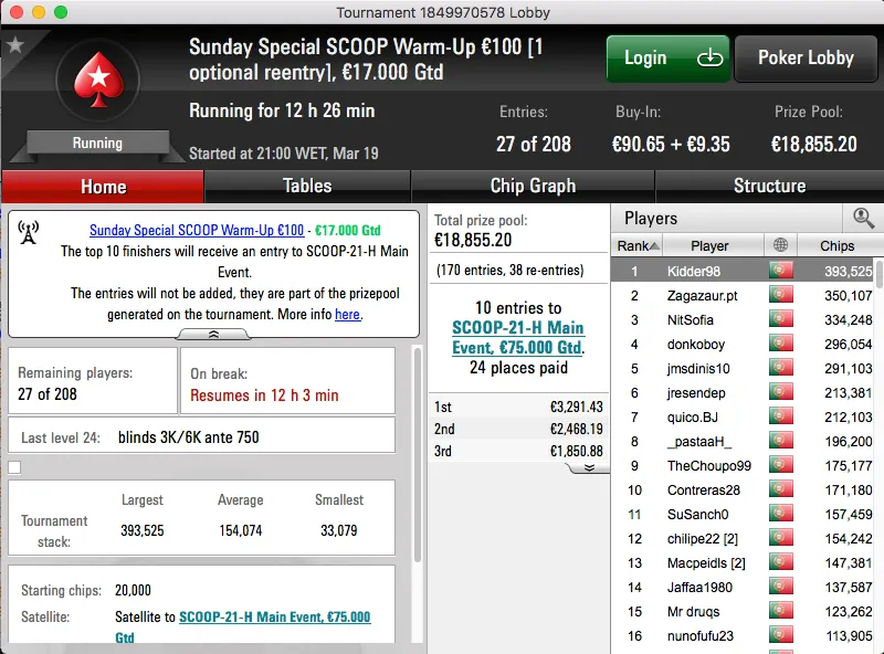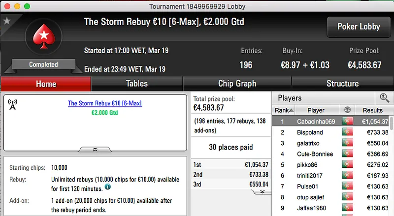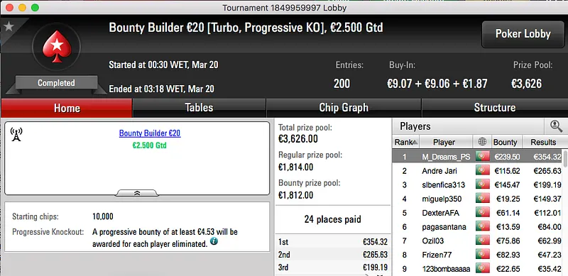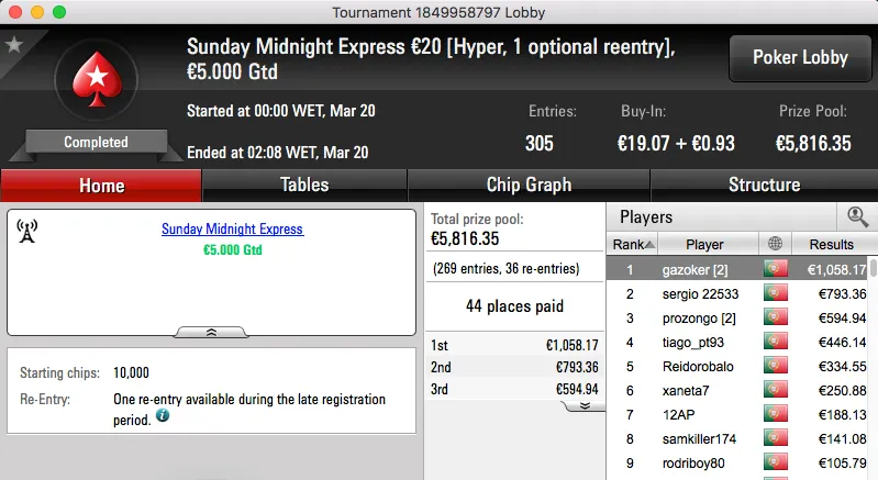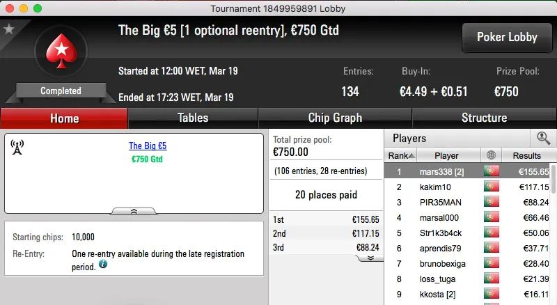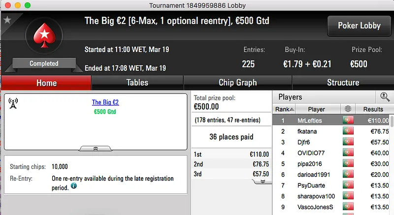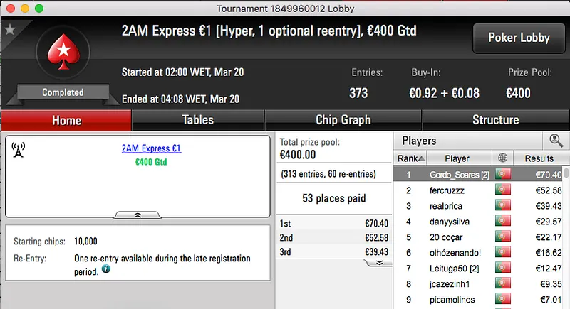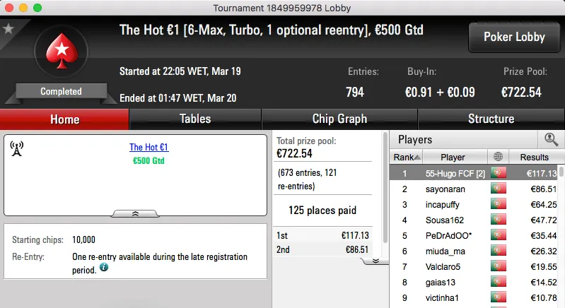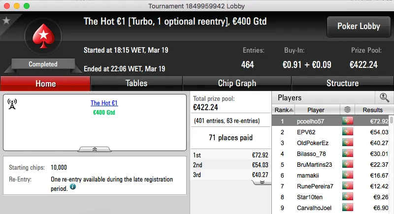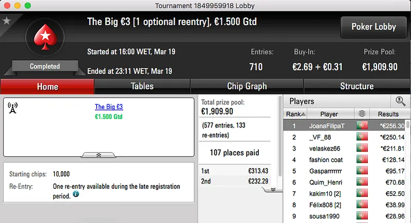 A sessão de domingo da PokerStars.pt contou ontem com a realização de 3 torneios diferentes, um "aquecimento" para a primeira edição lusa do Spring Championship Of Online Poker.