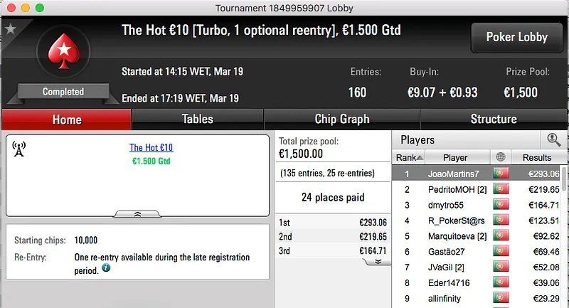 Logo atrás ficou obisgas, bateu o CegoPT (€1,378) no heads-up do The Hot BigStack Turbo €50 e tem agora mais €1,981 na sua conta.
