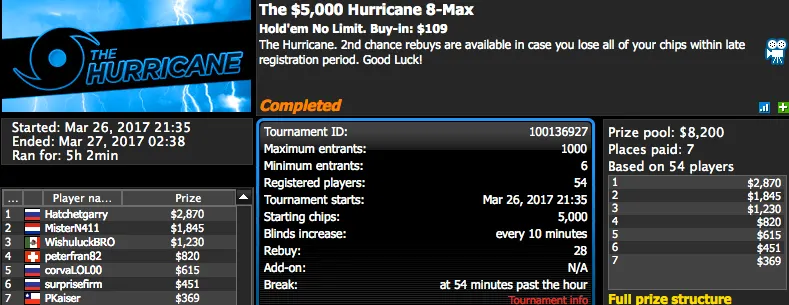 Para além disso ainda foi 25º no Sunday Warm-Up da PokerStars e ganhou $1,405.
