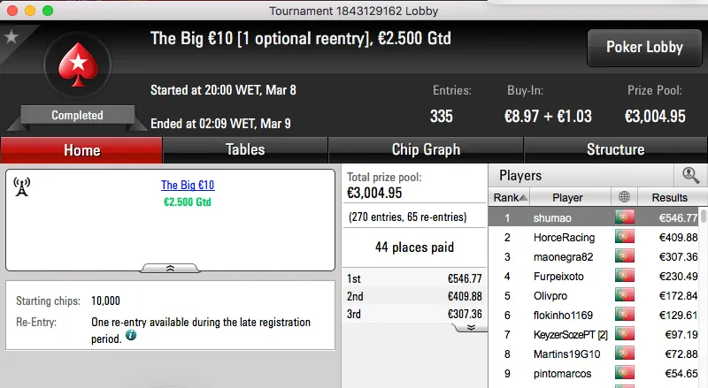 O título do The Big €100 ficou na posse de jpdmx (€1,214) depois de "arrumar" com Shutter22 (€932) em heads-up.