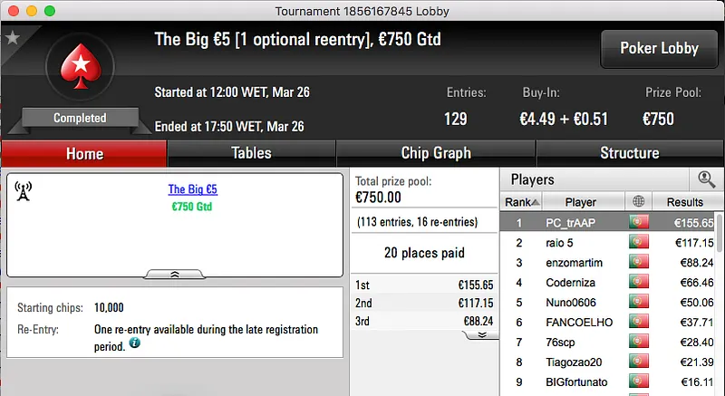 Já tens conta na PokerStars? Não!? Abre já, deposita €10 usando o código “PORTUGAL20” e recebe €30!