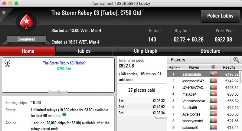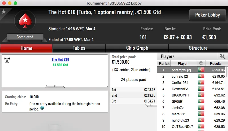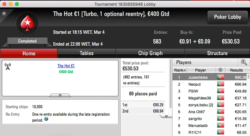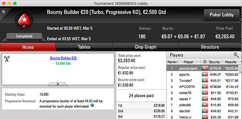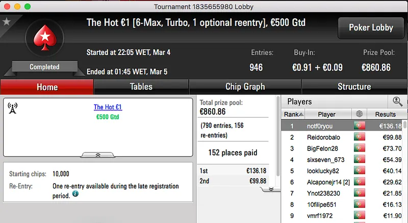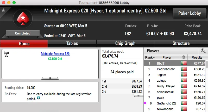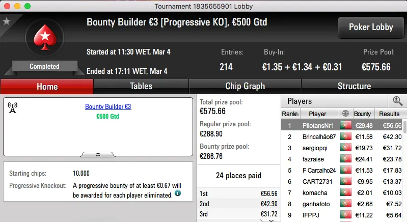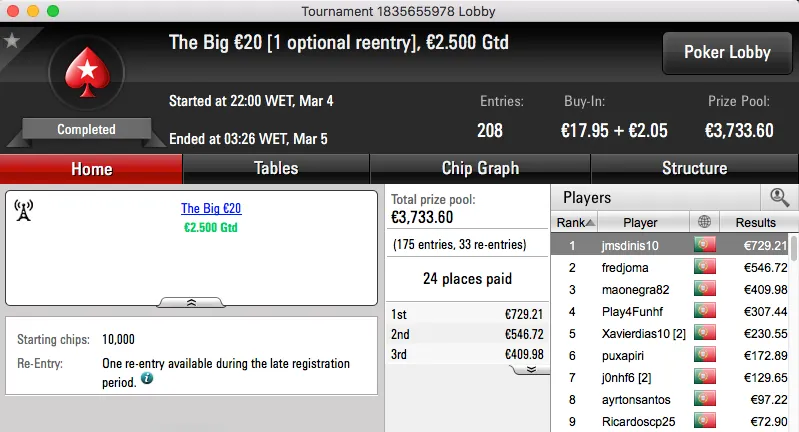 QuimDiamond Vence Hot BigStack Turbo €50; famaguda01 e zarabatana "Acordam" no Big €100