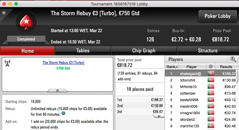 Já tens conta na PokerStars? Não!? Abre já, deposita €10 usando o código “PORTUGAL20” e recebe €30!