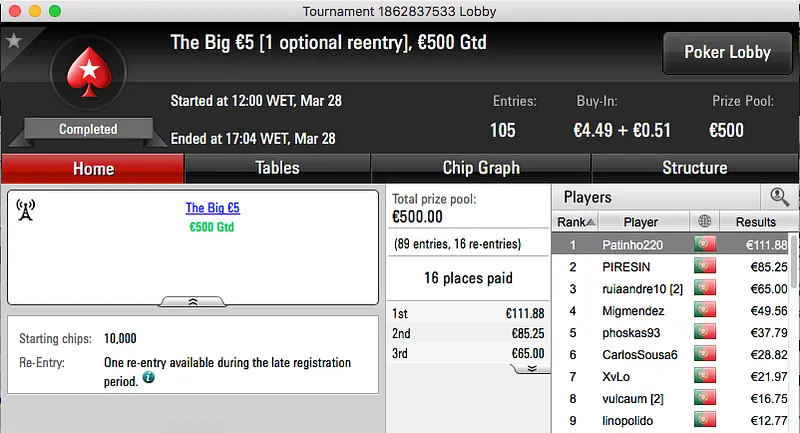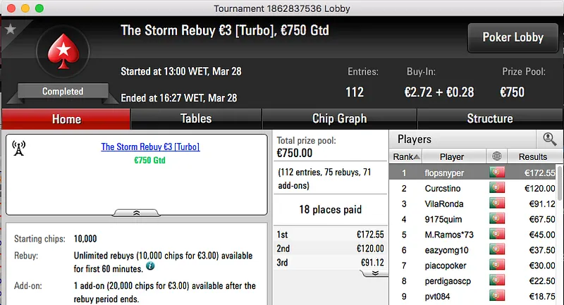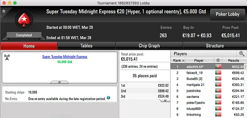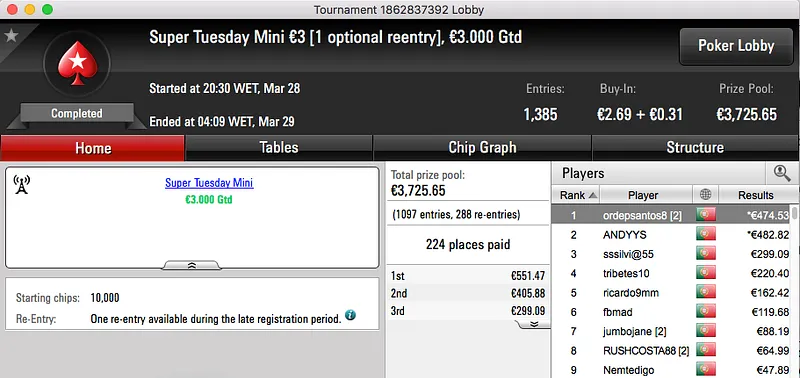 Tcmoreira Vence Super Tuesday Warm-Up €50 e Super Tuesday Big €10 & Mais