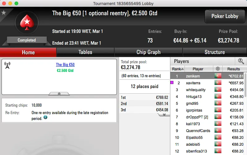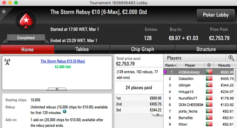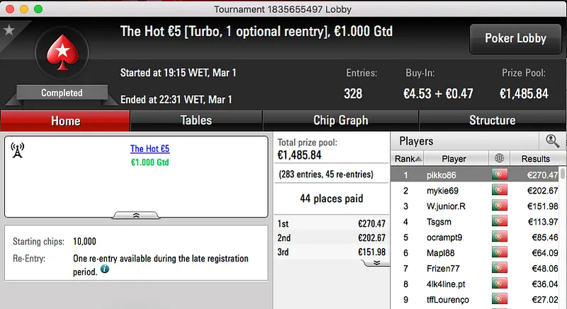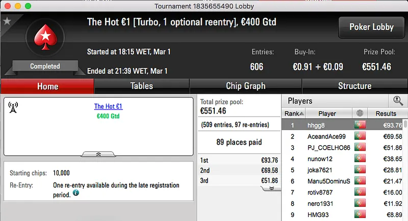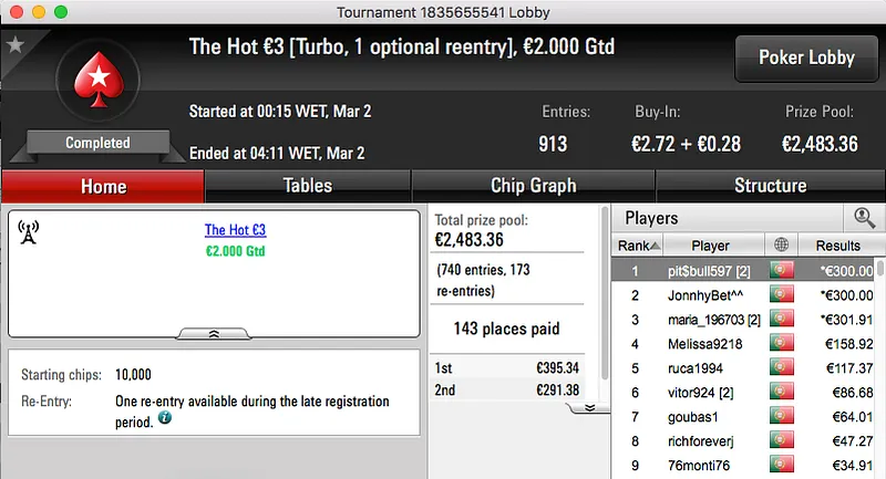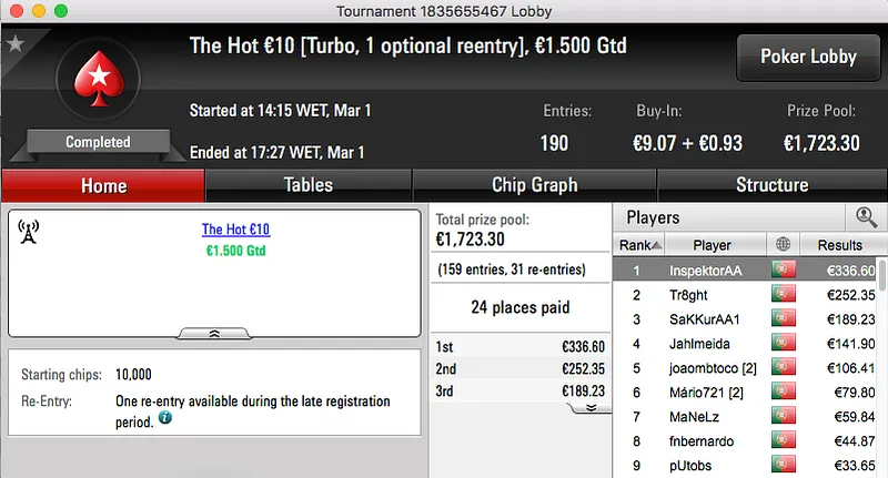 O The Hot BigStack Turbo €50 voltou a atribuir o maior prémio na sessão de quarta-feira da PokerStars.pt.