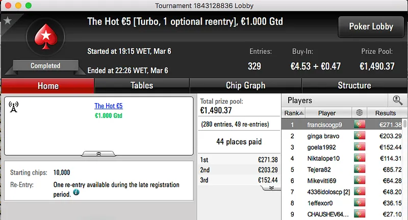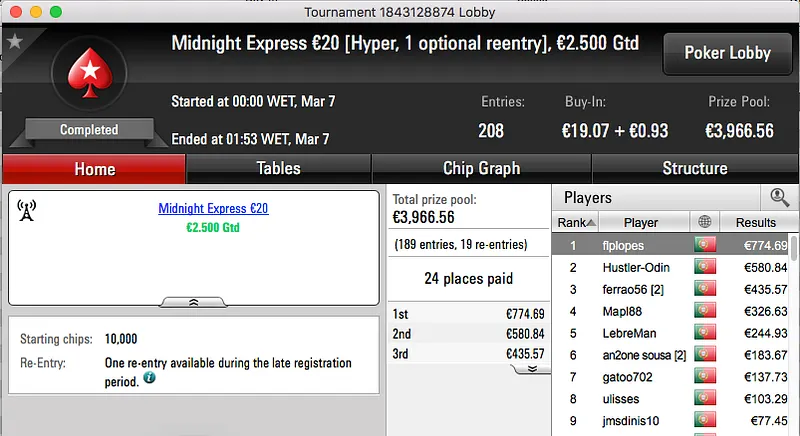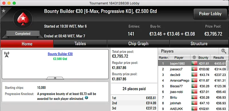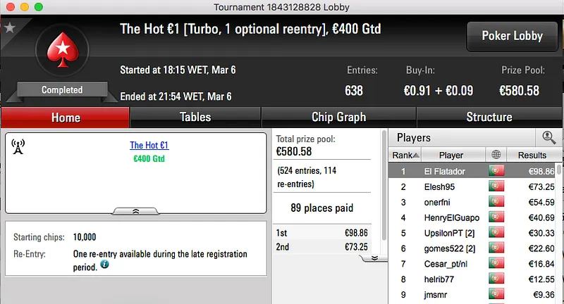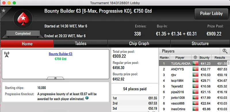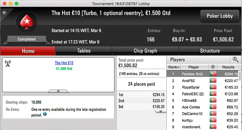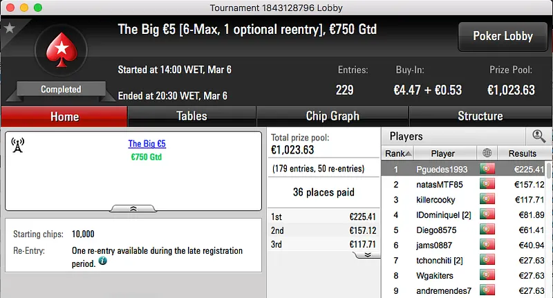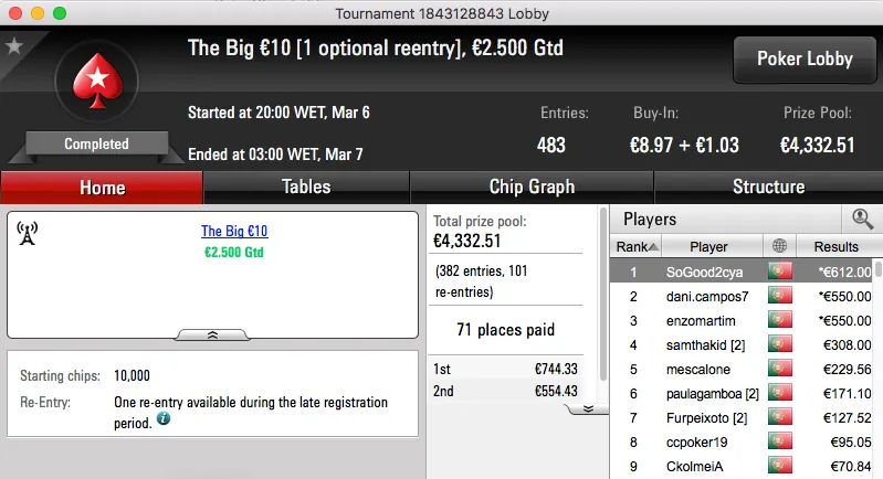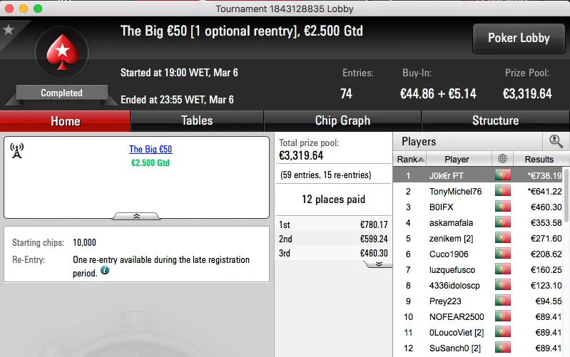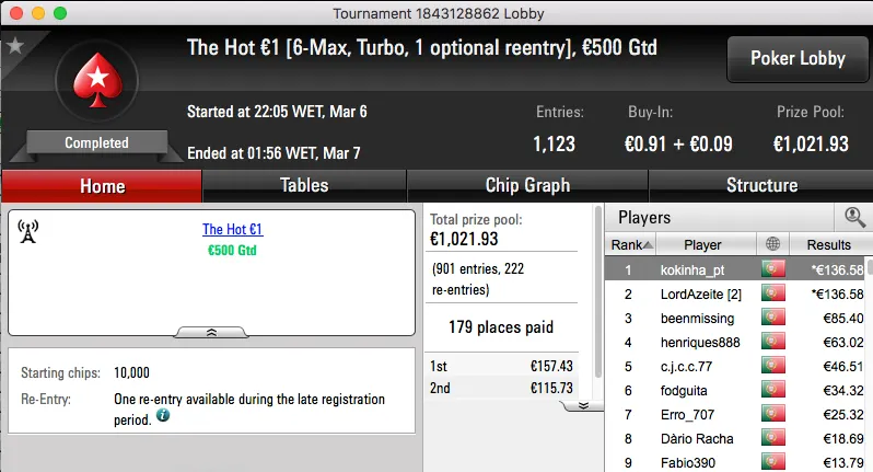 Como tem sido habitual a sessão de segunda-feira da PokerStars.pt assiste ao término de dois torneios de domingo e têm sido eles a entregar os maiores prémios da mesma.