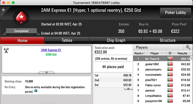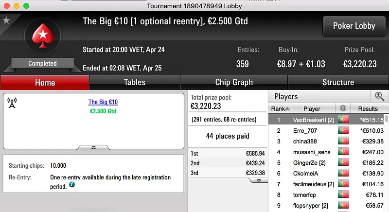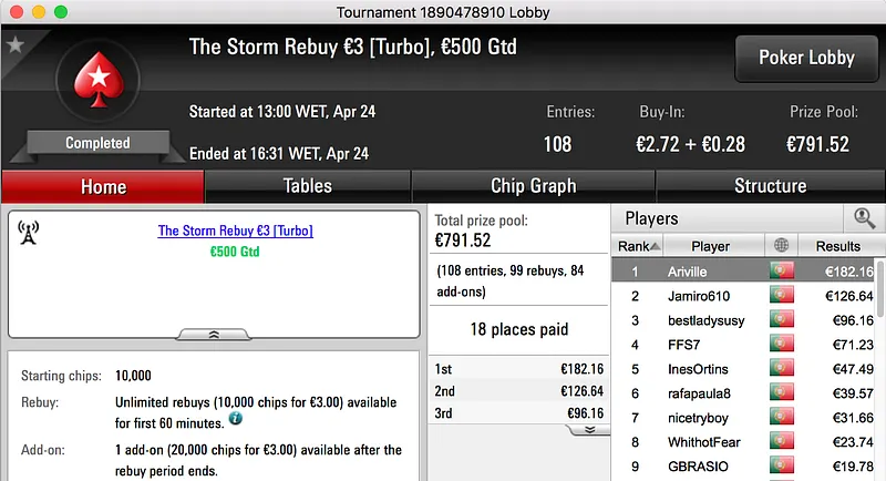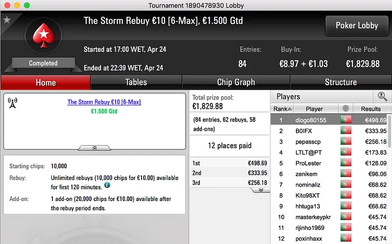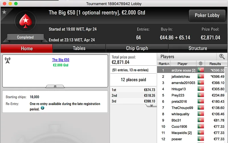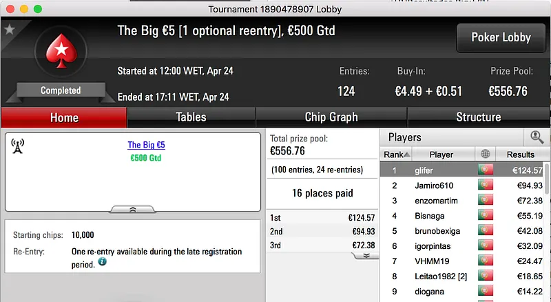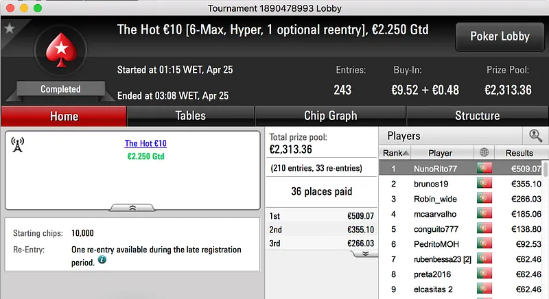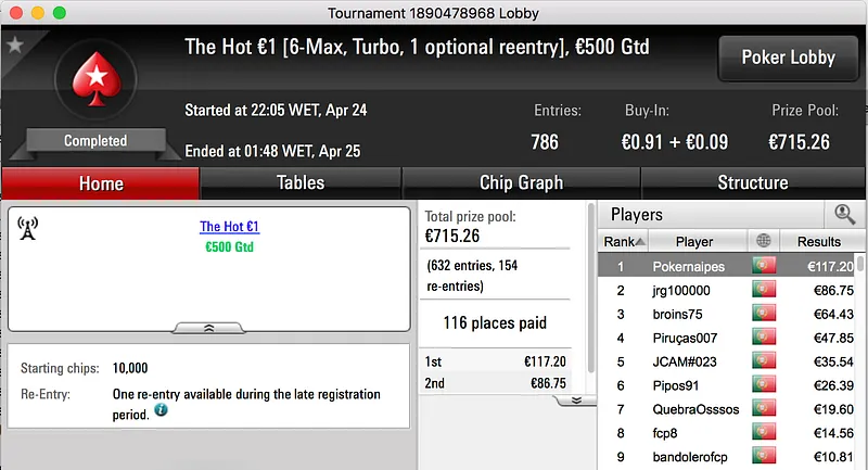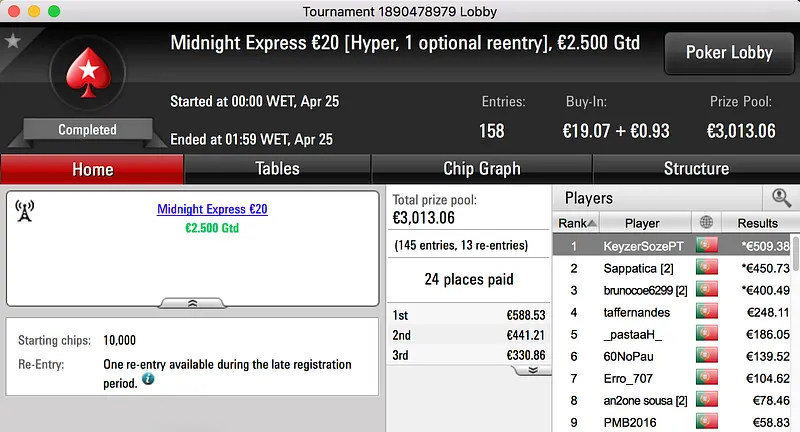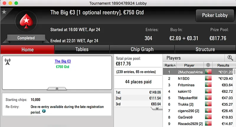 Por fim, fechamos o pódio com a vitória de Bolinhaslb83 no Bounty Builder €30, entre prize pool e bounties ganhou €778.