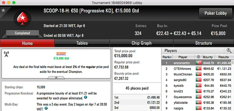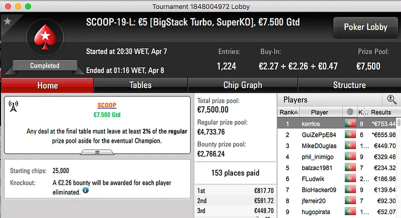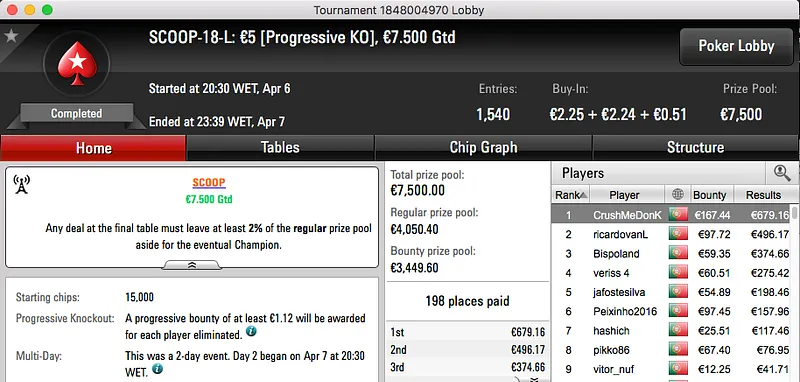 kerrlos (€771) e hugo_fcp (€2,074) foram os melhores no Evento #19, low e high.