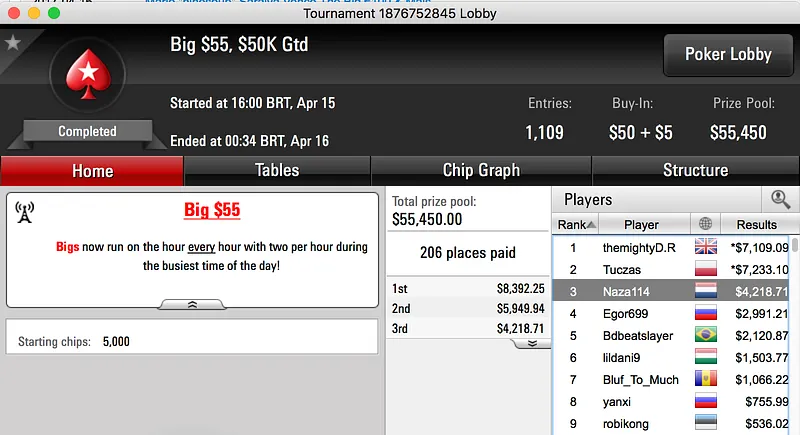 João "Naza114" Vieira 2º no Hot $109, 3º no Big $55 & Mais