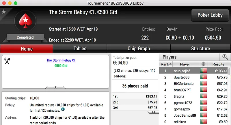 Por último, Andre Jari venceu o Bounty Builder €30 e ganhou €893.