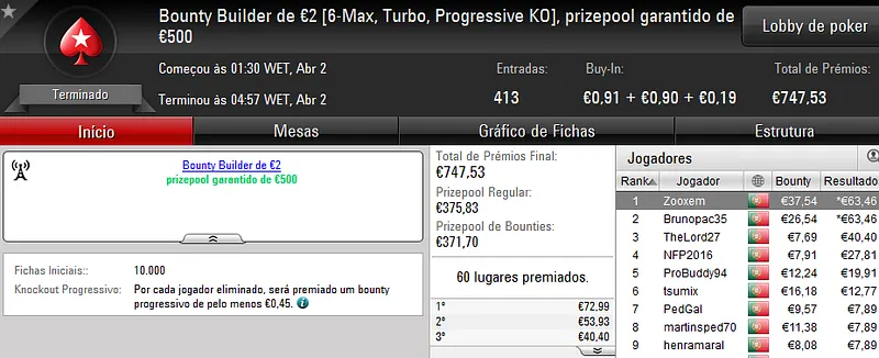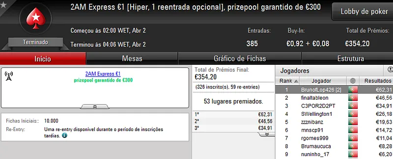 Em véspera para o grande dia de grind de poker online, tivemos apenas um resultado de 4 dígitos nos torneios regulares da PokerStars.pt.