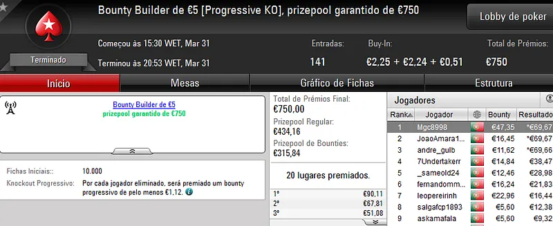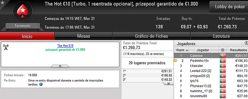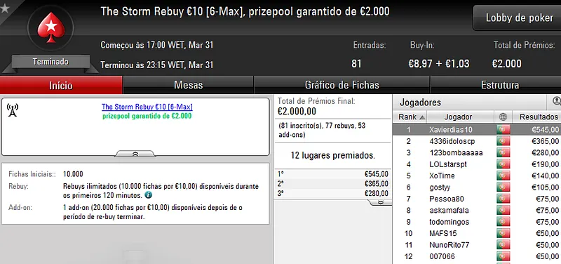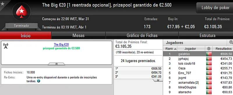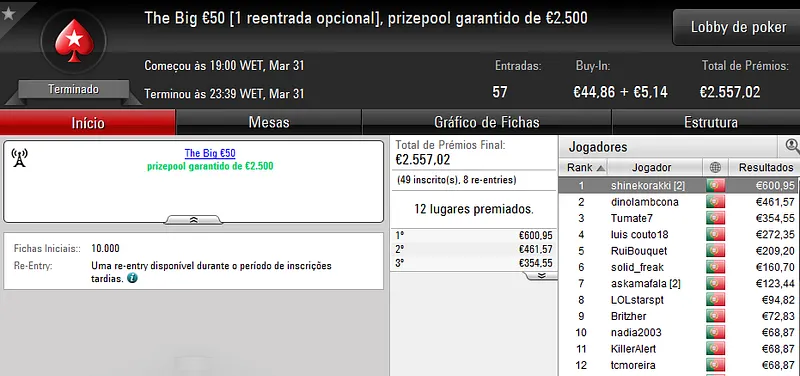Mesmo com muita ação no poker ao vivo, os torneios regulares da PokerStars.pt continuam com bastante afluência.