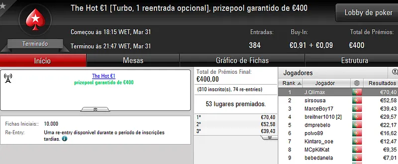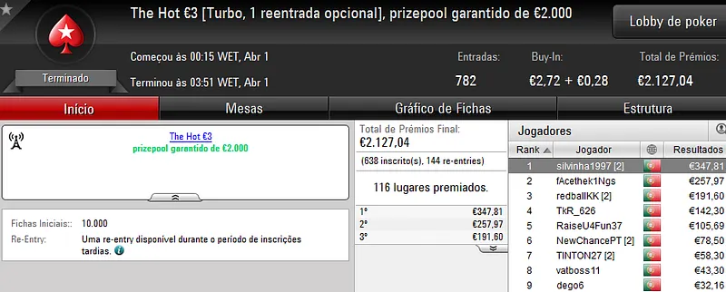 Peixinho2016 Vence The Hot BigStack Turbo €50