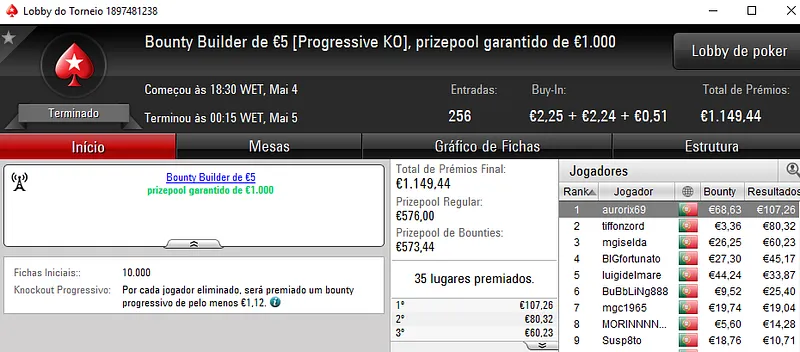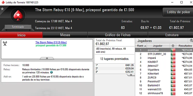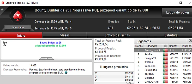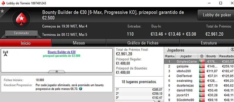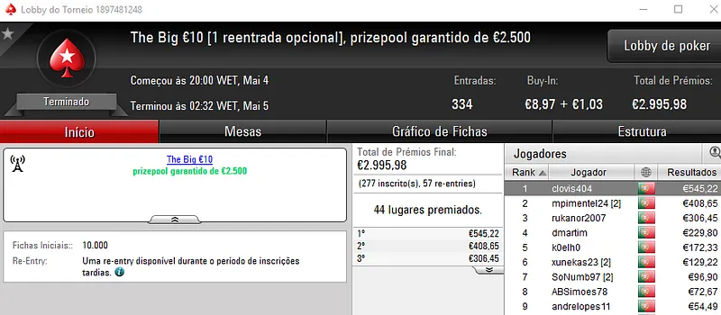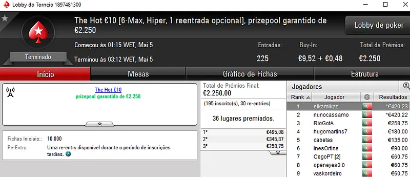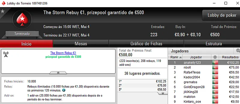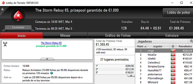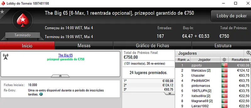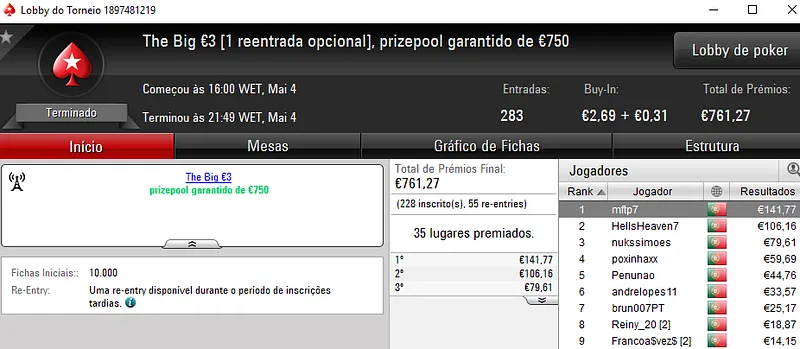 Mesmo com o WSOPC a decorrer no Estoril, ontem a PoekrStars.PT entregou mais 3 prémios de 4 dígitos.