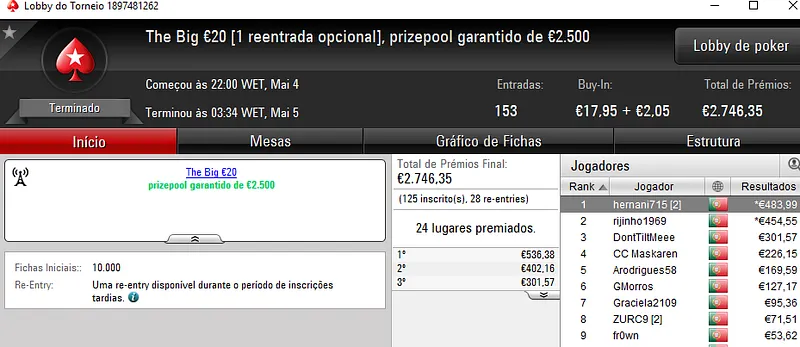 Fábio 'wannab333' Dâmaso Vence The Big €100 e Vieira.Lr o The Hot BigStack Turbo €50