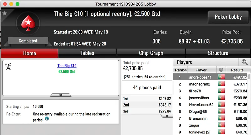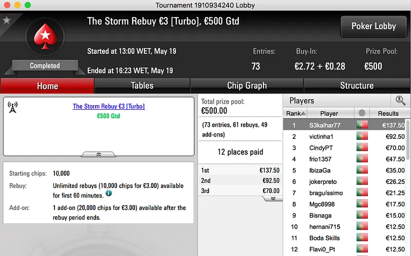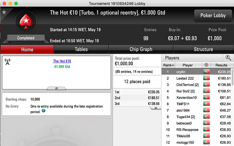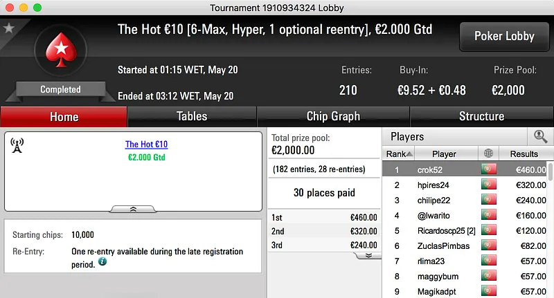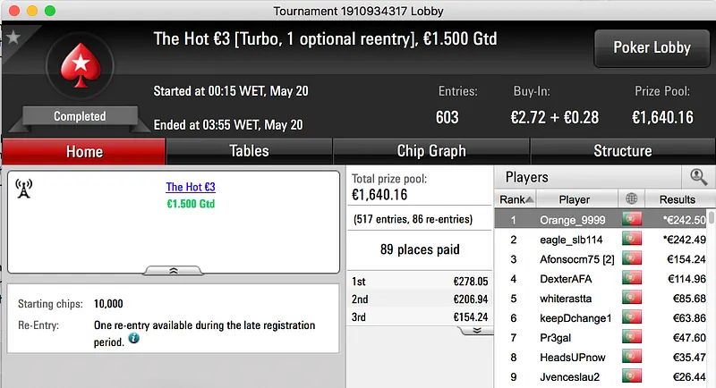 Com uma diferença de apenas €3, Tr8ght foi o melhor no The Hot BigStack Turbo €50 e depois de vencer Rui Bouquet (€785) em heads-up ficou com mais €1.669 na sua conta.