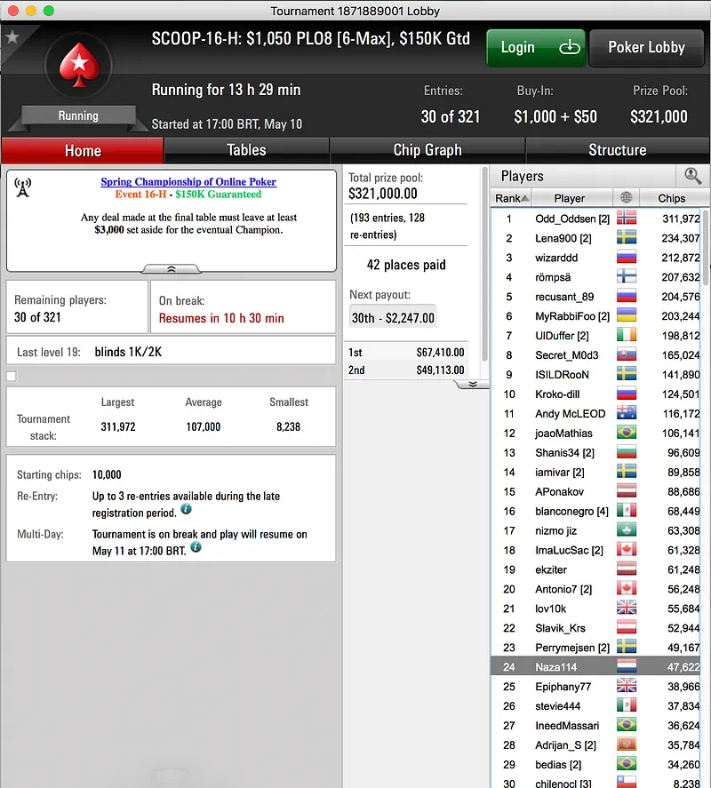 - 24/30 @ SCOOP #16-High, 1K Pot Limit Omaha HI/Low, com 24bb