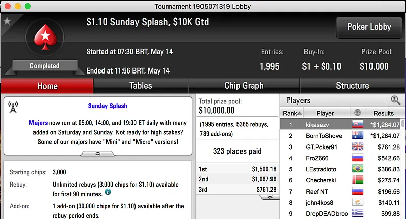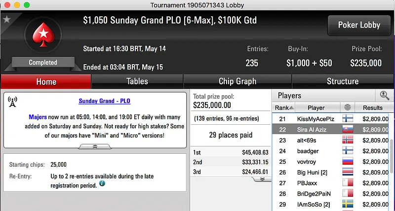 João Vieira também esteve bem nos regulares da PokerStars e foi 10º no $1,050 Sunday Grand NLH, ganhou $4.105.