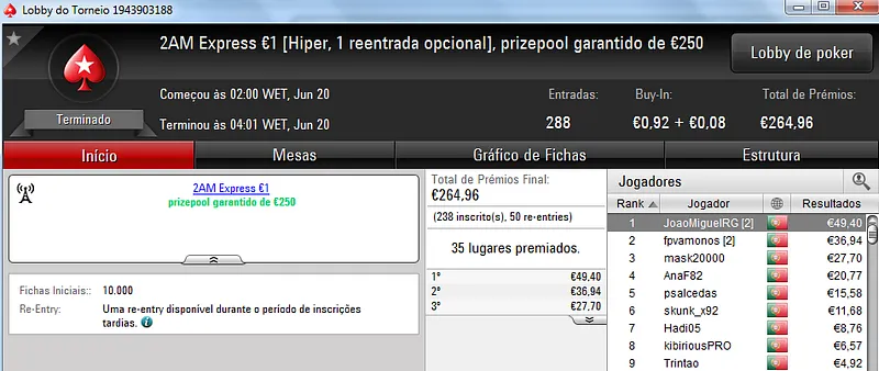 Já tens conta na PokerStars? Não!? Abre já, deposita €10 usando o código “PORTUGAL20” e recebe €30!