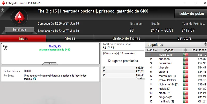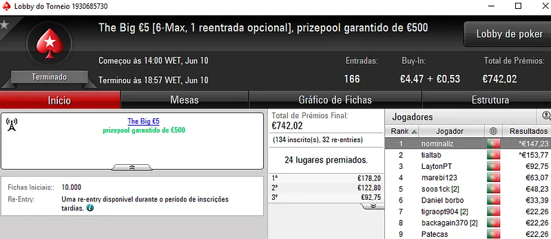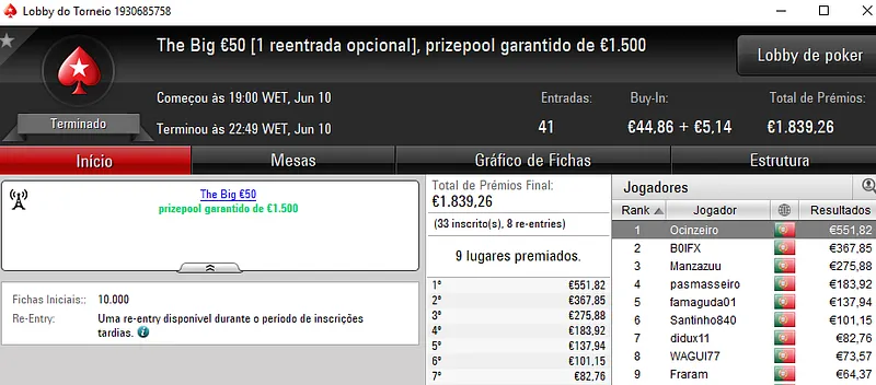 Mesmo assim, como já é habitual, os maiores resultados apareceram no The Hot BigStack Turbo €50 e no The Big €100.