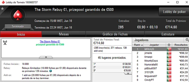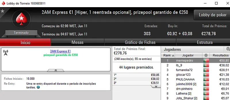 Ontem não foi entregue nenhum prémio de 4 dígitos pela PokerStars.pt.