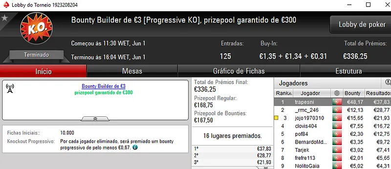A somar a estes dois resultados, jensjensen4 ainda conseguiu um terceiro lugar no The Big €50 que lhe valeu mais €363. Este torneio contou com 54 entradas e na primeira posição ficou Ricardoscp25 que recebeu €726. No segundo posto, ZURC9 encaixou €484 pela prestação.