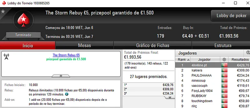A sessão de ontem da PokerStars.Pt foi bem recheada e contamos 9 resultados de 4 dígitos entregues pela sala de poker online.
