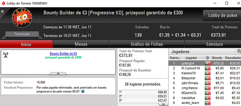 TheChoupo99, Elboy2012, DanielTavars e S3kalhar77 em Grande nos Torneios de Domingo